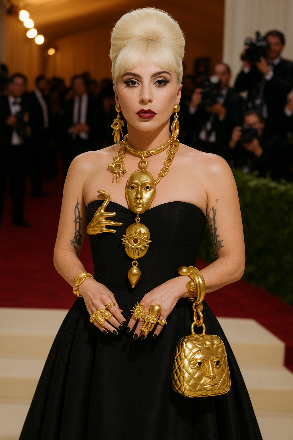 Resultatet blev så bra – tycker i alla fall jag – att jag fortsatte, och även bad om looks till stjärnor som brukas uppmärksammas för sin stil, såsom Coleman Domingo, Cynthia Erivo, Ariana Grande, Lady Gaga, Tyla, Kylie Jenner och Timothy Chalamet, samt Rihanna och A$ap Rocky. Kläderna ville jag skulle vara inspirerade av modehus som Schiaparelli, Bottega Veneta, Chanel, Versace och Louise Vuitton som brukar klä kändisarna på galan.
